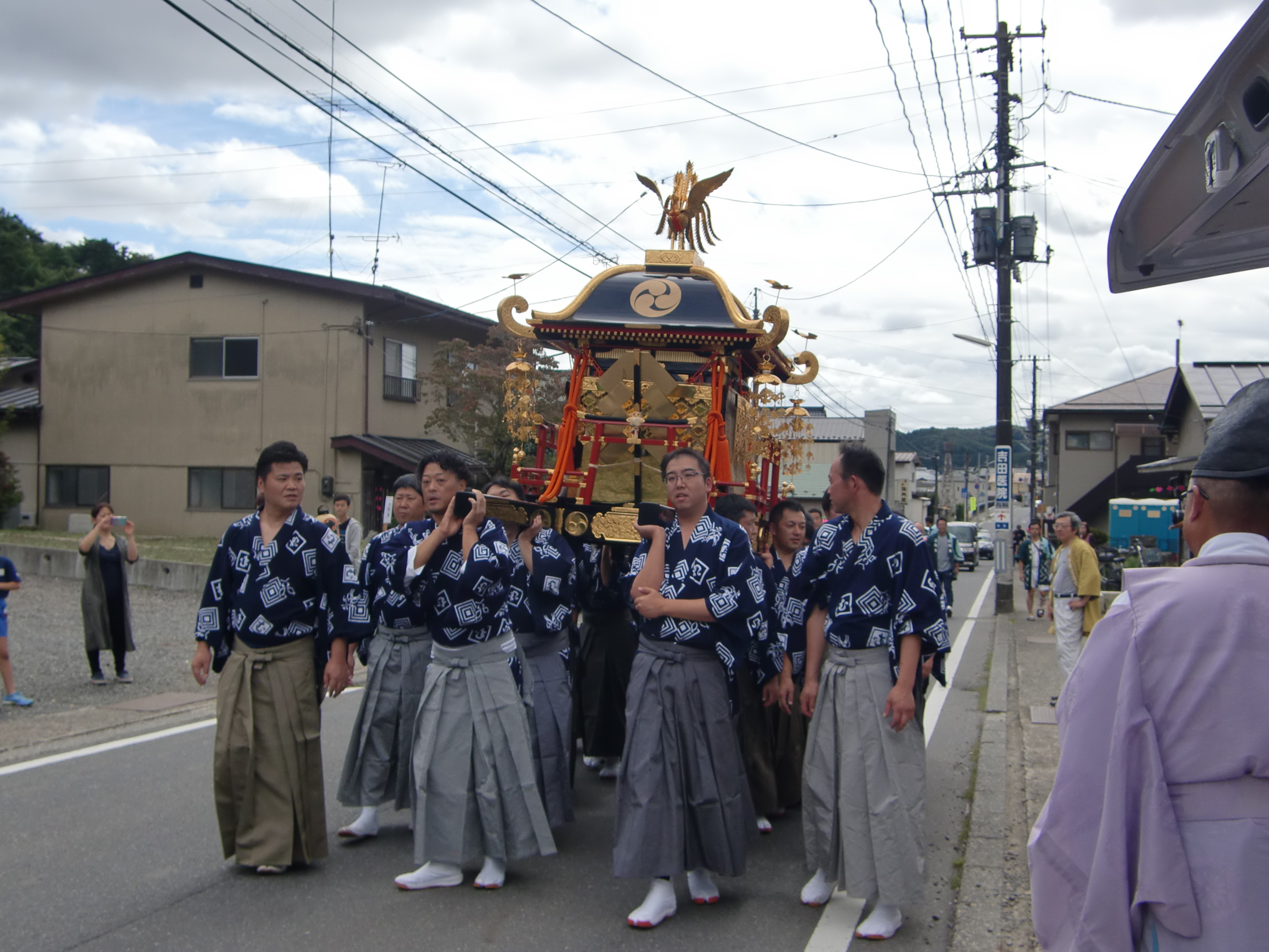 鹿嶋神社のお神輿、御旅所から町内渡御出発へ準備万端です